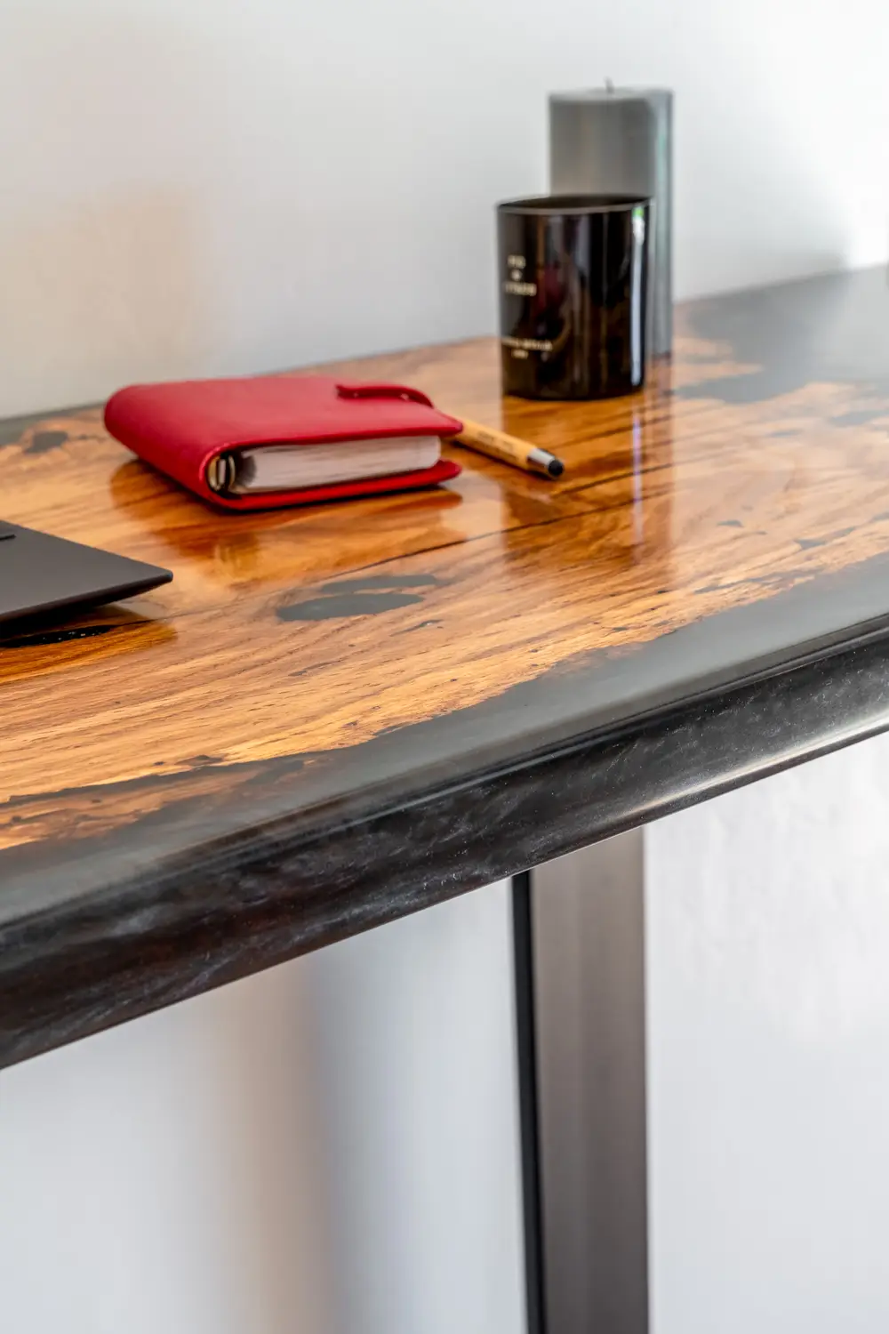 Pourquoi la résine noire est-elle devenue la finition la plus prisée de notre atelier ? Découvrez les secrets de fabrication et les avantages esthétiques de ce mobilier unique.